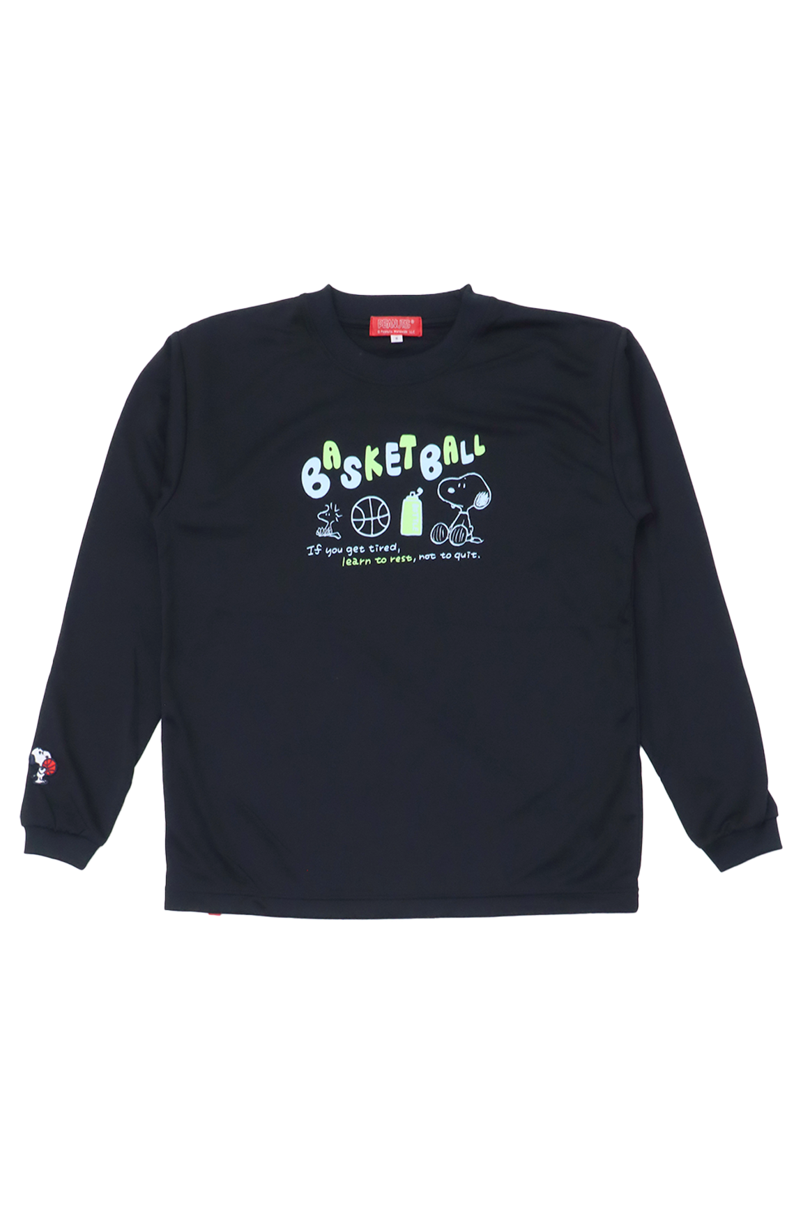 2025 FALL & WINTER のアイテムです。ピーナッツのロングスリーブシャツ。休憩しているスヌーピーのイラストが可愛い!!【素材】[シュクール(polyester100%)」ポリエステル100%の素材吸水・速乾性の高い素材で練習着にぴったり