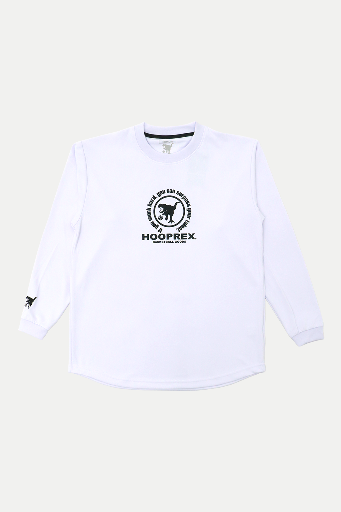 HOOPREXのスタンダードなロングスリーブシャツ。裾のラウンドがスタイルアップに、丈短パンツとの相性は抜群です。■プリントカラーホワイト…ブラックグリーン…ホワイトブラック…ホワイトレッド …ホワイトNYブルー…ホワイトネイビー…ホワイト■サイズレンジS・M・L・XL・2XL■素材[HRピンメ ッシュ(polyester100%)]吸水速乾性があり、軽量で柔らかい肌あたりが着心地のよいスポーツ素材。■付属刺繍(右袖口、背中首元)