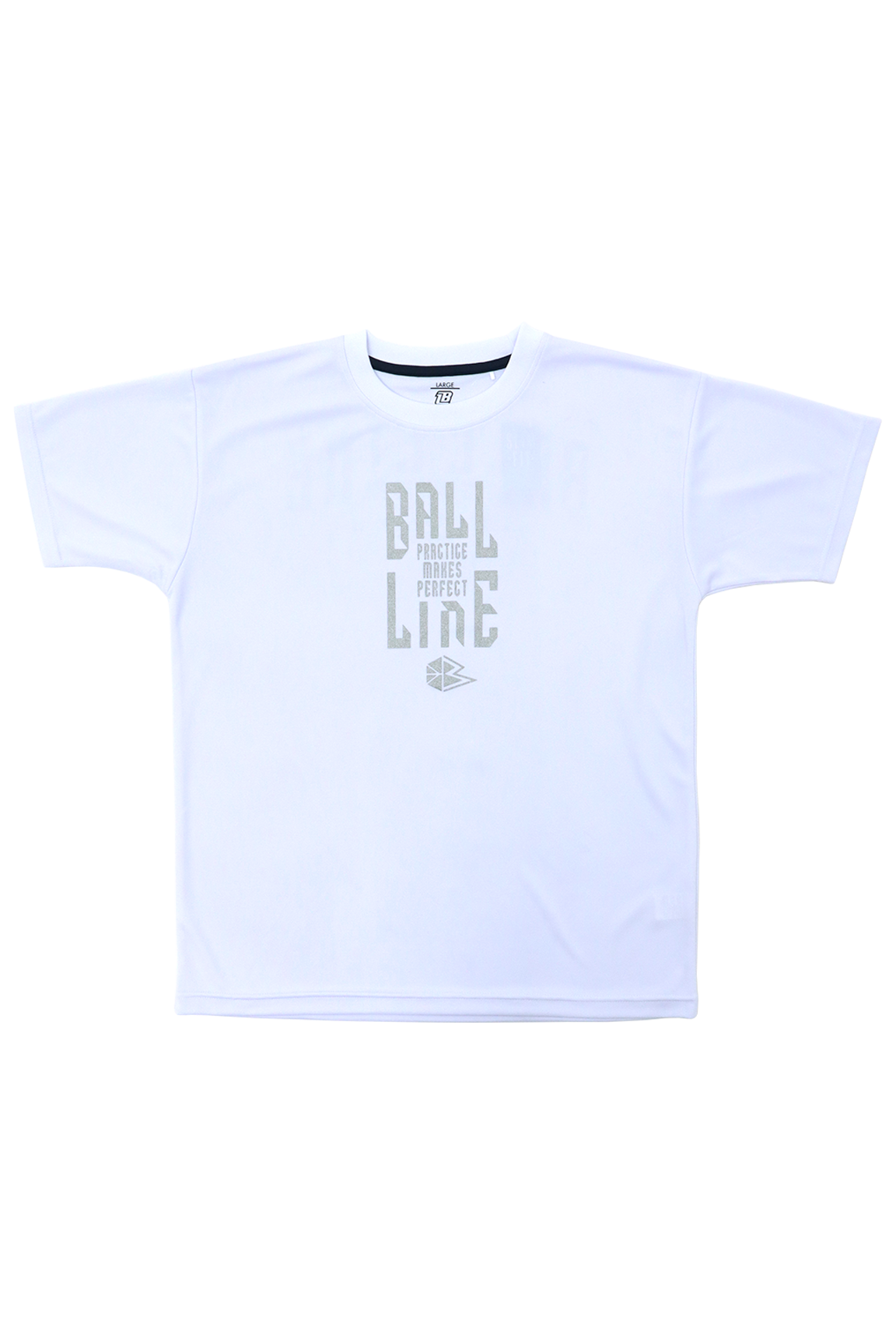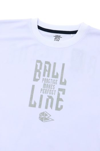 BALL LINEの『スリムフィット』なTシャツ。※「品番 BT-」シリーズとはサイズ感が異なりますのでご注意くださいませ。プリントにラメ が使用されているため、キラキラで可愛い!!”Practice makes perfect.”には、『継続は力なり』という意味があります。■プリントカラーホワイト…銀ホワイト…ライトパープルラメ ブラック…金ブラック…バーミリオンラメ ■サイズレンジS・M・L・XL■素材[シュクール(polyester100%)]吸水・速乾性の高い素材で練習着にぴったり■シーズン2026 Spring&Summer